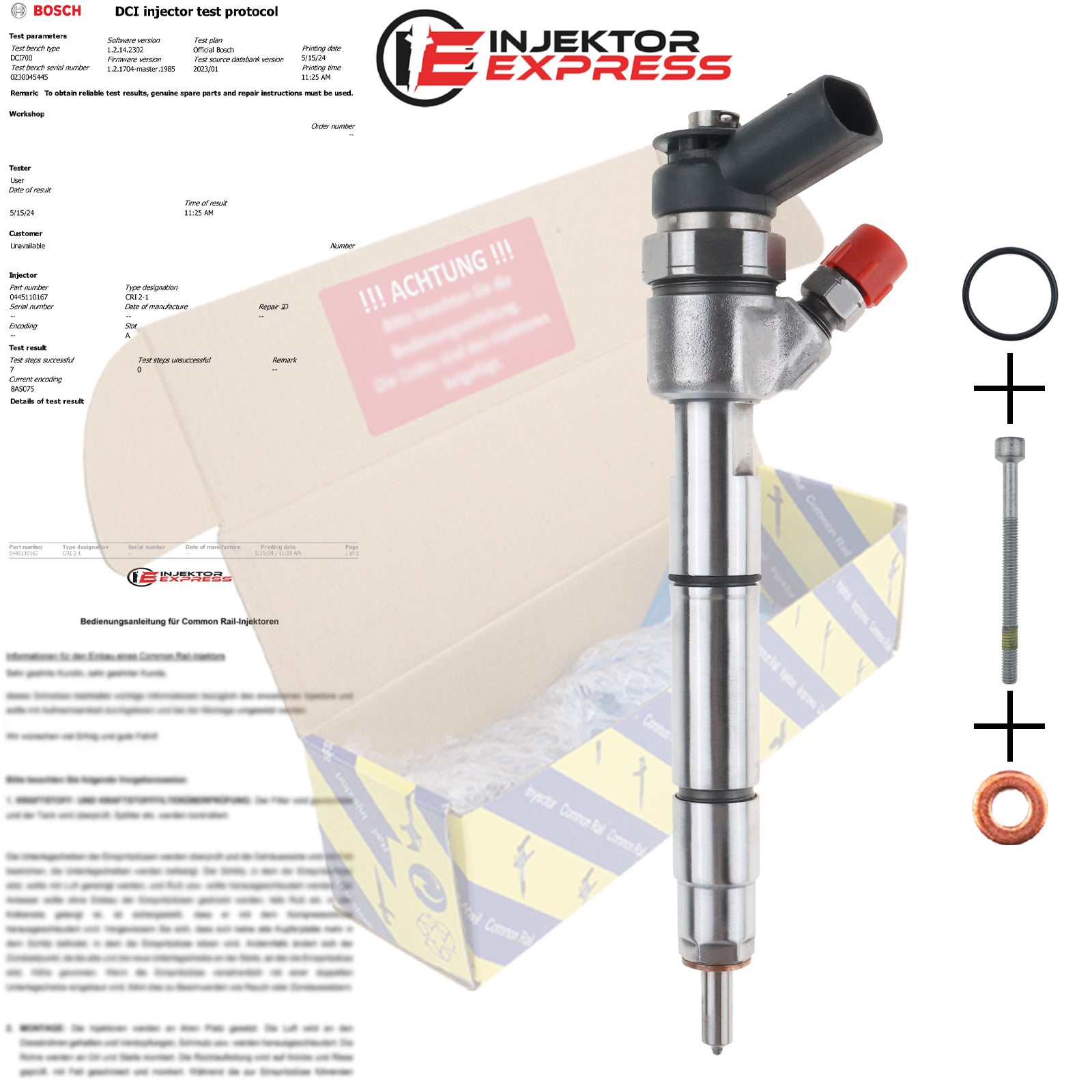 Bei unserer Ware handelt es sich um generalüberholte Injektoren. Für den fachgerechten Einbau des gelieferten Teils sind Sie selbst verantwortlich. Wir empfehlen dringend, die Einbau- und Funktionsprüfung durch qualifiziertes Fachpersonal durchführen zu lassen. Bitte stellen Sie vor dem Einbau sicher, dass das Teil in Maß, Form und Anschluss dem Original entspricht. Bei Abweichungen kontaktieren Sie uns bitte vor der Montage.
