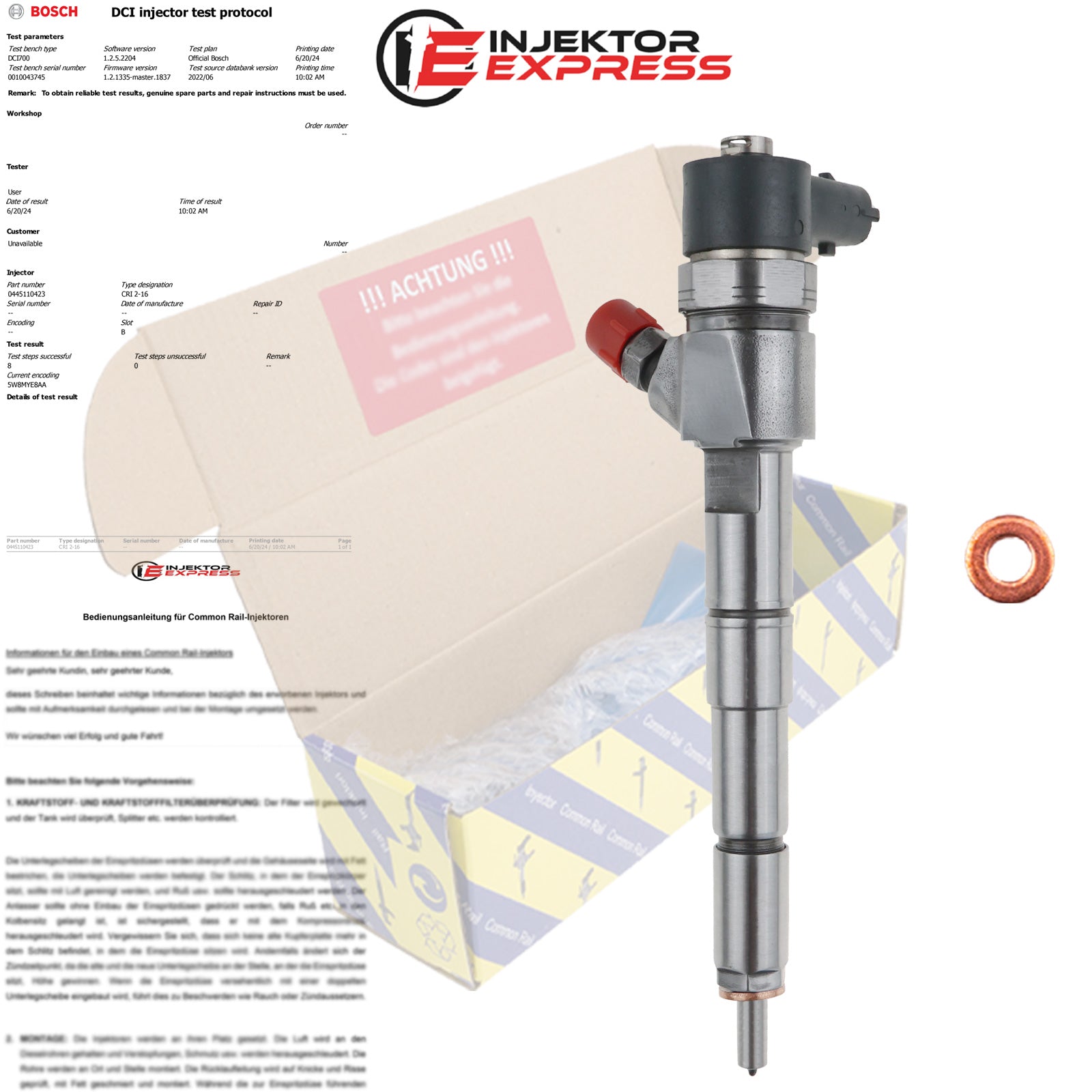 Bei unserer Ware handelt es sich um generalüberholte Injektoren. Für den fachgerechten Einbau des gelieferten Teils sind Sie selbst verantwortlich. Wir empfehlen dringend, die Einbau- und Funktionsprüfung durch qualifiziertes Fachpersonal durchführen zu lassen. Bitte stellen Sie vor dem Einbau sicher, dass das Teil in Maß, Form und Anschluss dem Original entspricht. Bei Abweichungen kontaktieren Sie uns bitte vor der Montage.