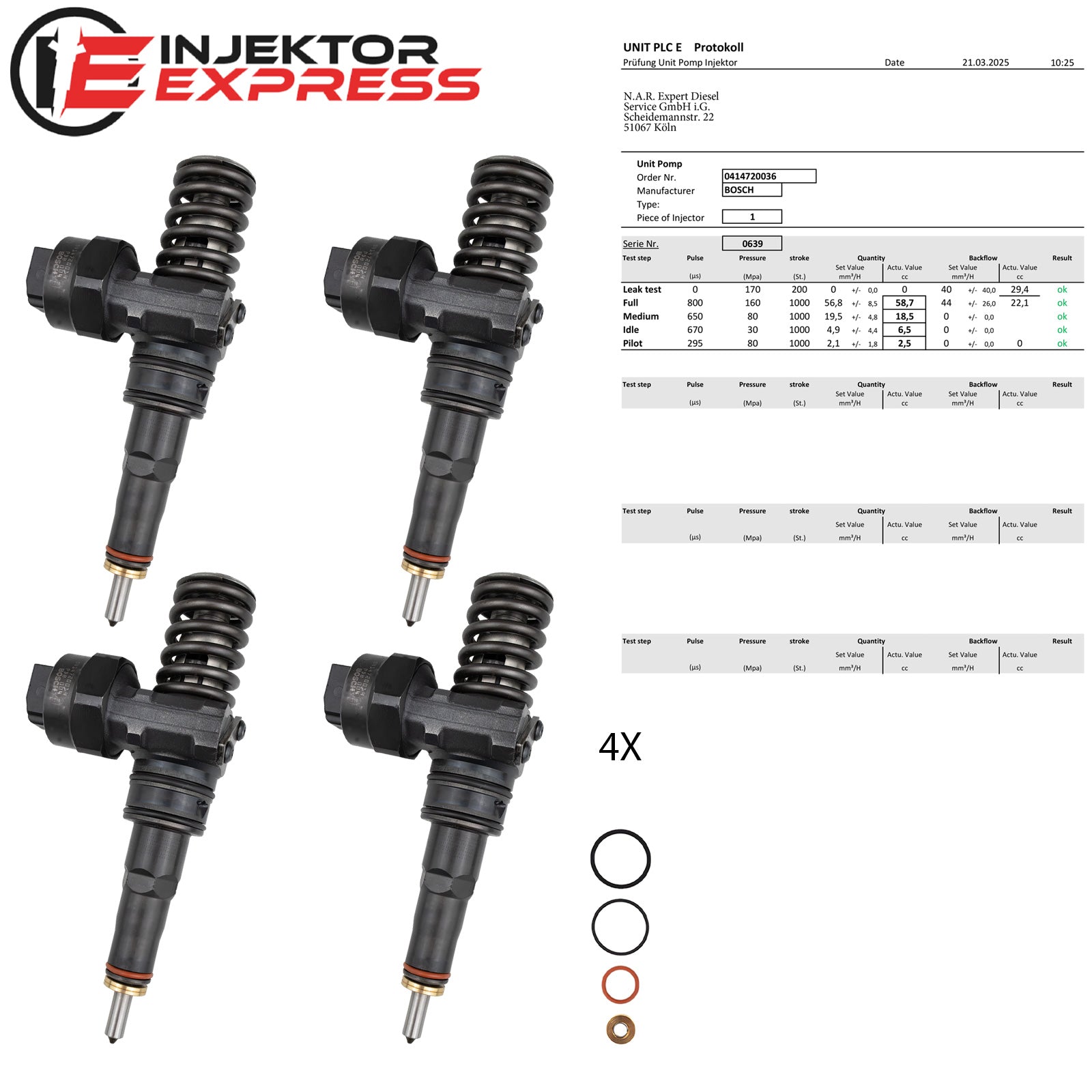 Bei unserer Ware handelt es sich um generalüberholte Injektoren. Für den fachgerechten Einbau des gelieferten Teils sind Sie selbst verantwortlich. Wir empfehlen dringend, die Einbau- und Funktionsprüfung durch qualifiziertes Fachpersonal durchführen zu lassen. Bitte stellen Sie vor dem Einbau sicher, dass das Teil in Maß, Form und Anschluss dem Original entspricht. Bei Abweichungen kontaktieren Sie uns bitte vor der Montage.